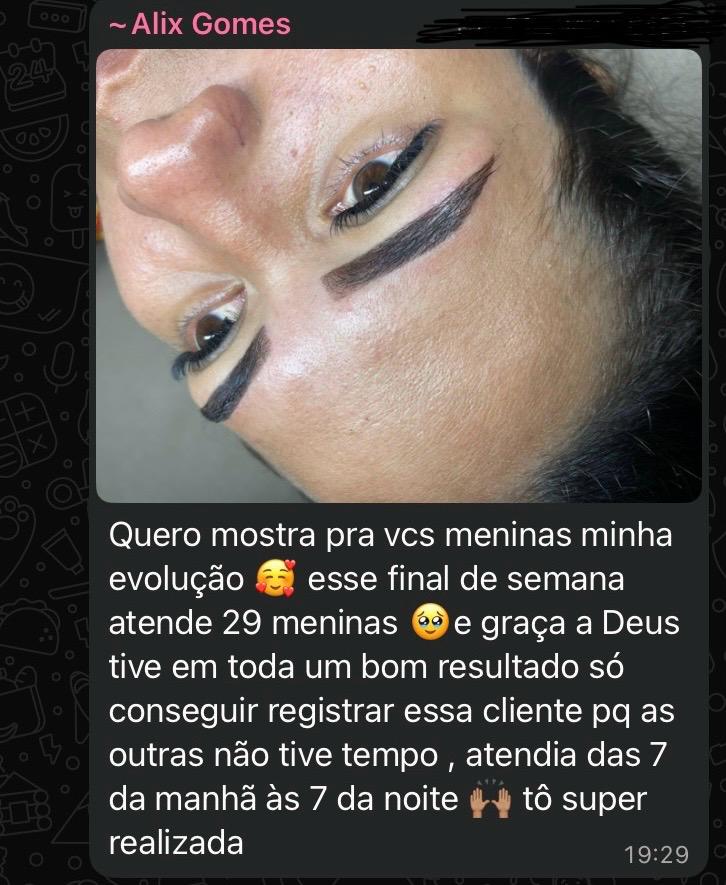 É o momento de ver o resultado acontecer. Nessa fase, a aluna aprende a transformar o interesse das pessoas em agendamentos reais, de forma natural e segura. Ela entende como fazer o fechamento sem medo de cobrar, como usar a prova social pra gerar confiança e como criar o hábito de pedir indicações. No fim dessa fase, ela tem as primeiras clientes, e a sensação de que finalmente tudo começou a andar.