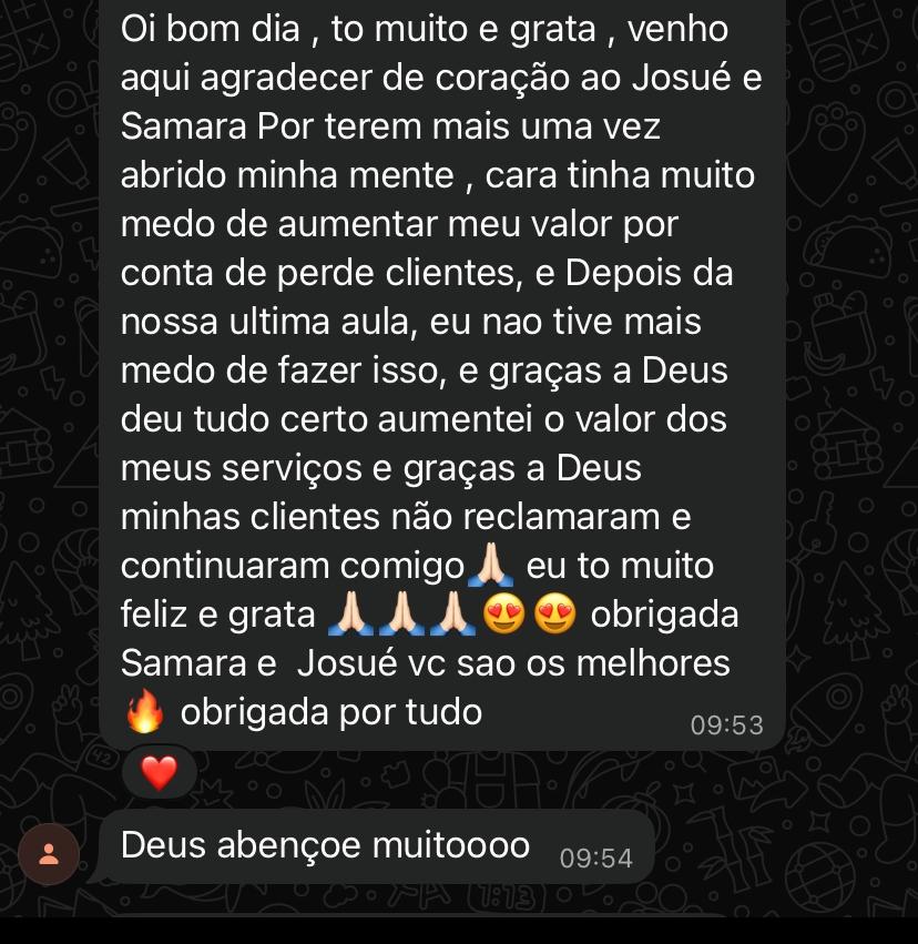 Agora é hora de transformar movimento em oportunidade. A aluna aprende como usar o WhatsApp e o boca a boca ativo pra gerar conversas que viram clientes reais. Ela vai aprender mensagens estratégicas, pedidos de indicação e formas de reativar contatos antigos, tudo de forma humana, leve e eficaz. Aqui é onde ela percebe que pode gerar resultados com o que já tem, sem precisar depender de redes sociais.